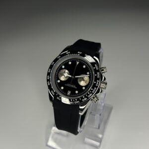 A sleek black chronograph wristwatch featuring a durable rubber strap and the reliable VK63 movement—sporty, modern, and built for everyday performance.