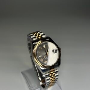 This two-tone NH35 automatic watch blends timeless design with dependable mechanical performance. The fluted bezel adds a refined edge, while the dark dial with applied markers and a magnified date window offers excellent readability and a balanced, elegant appearance.